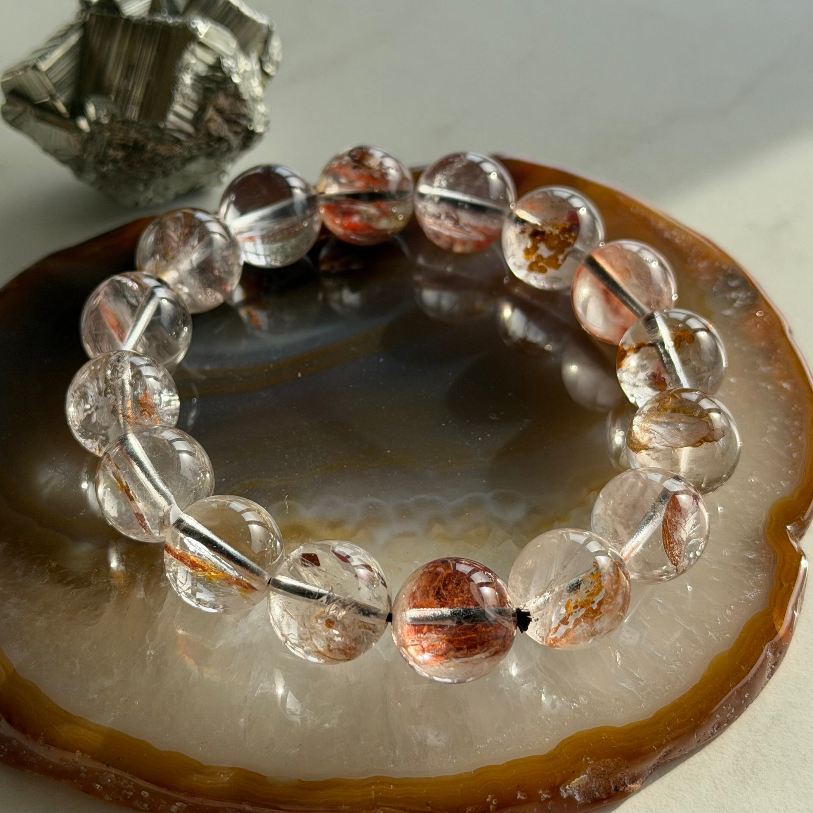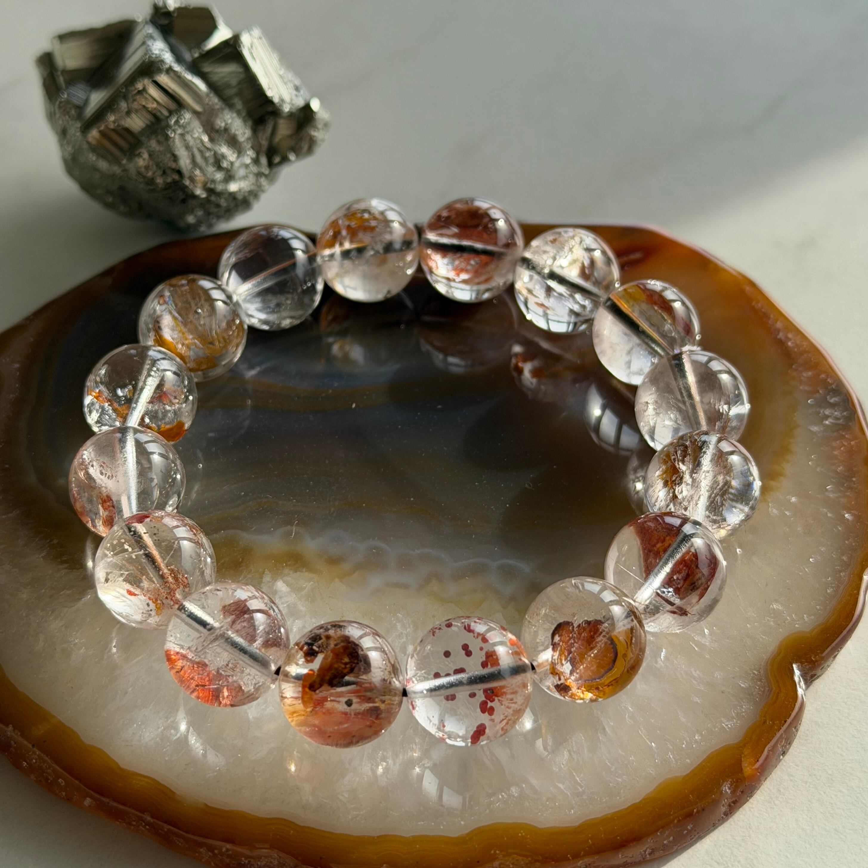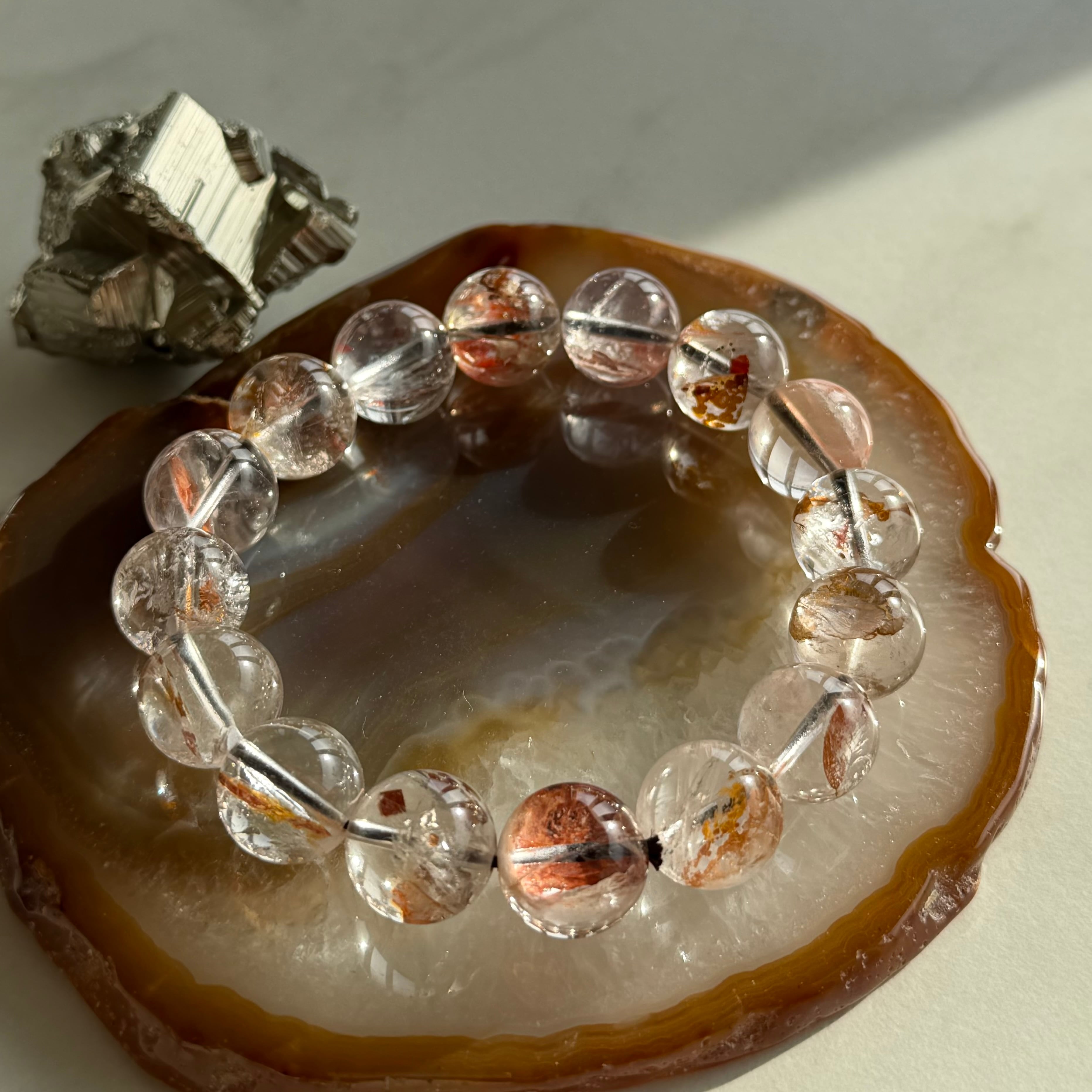 光を受けるたび、内包物が奥行きをもって浮かび上がり、
