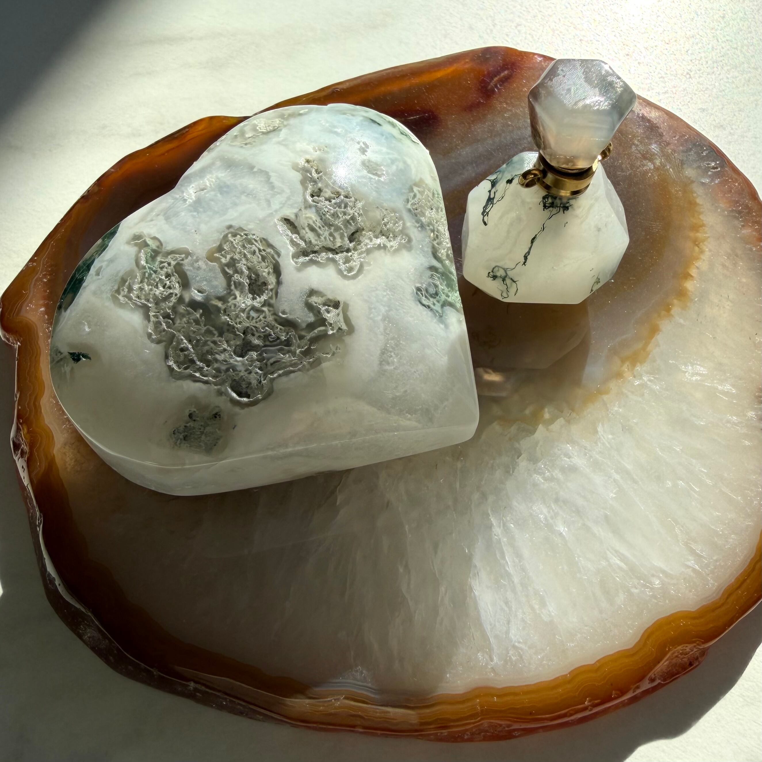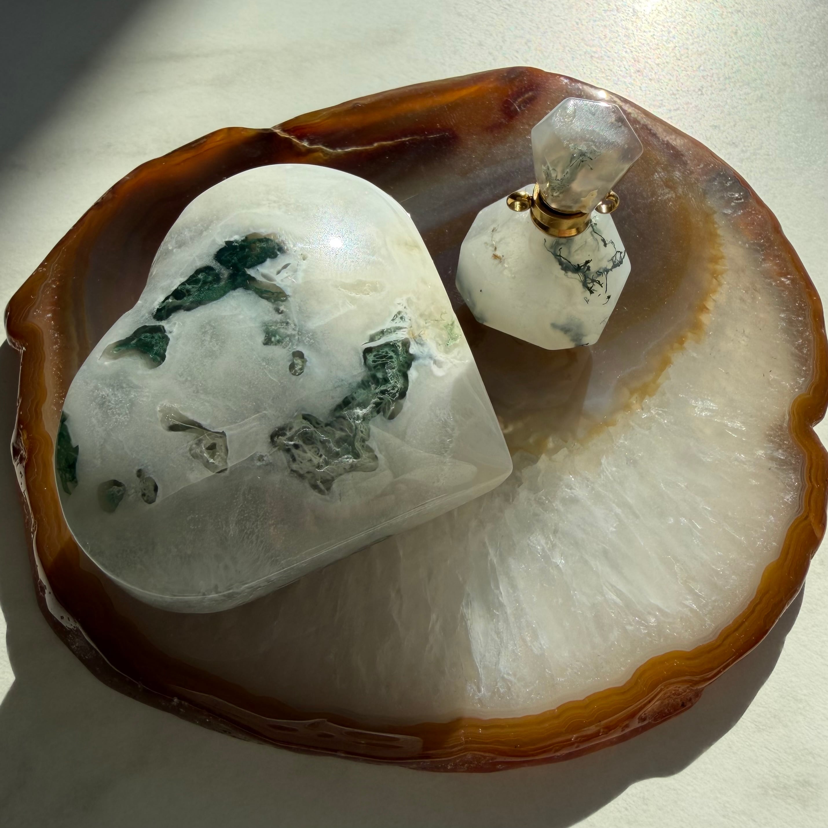 ミルキーモスアゲート ハートパーム & 香水瓶 セット【A】