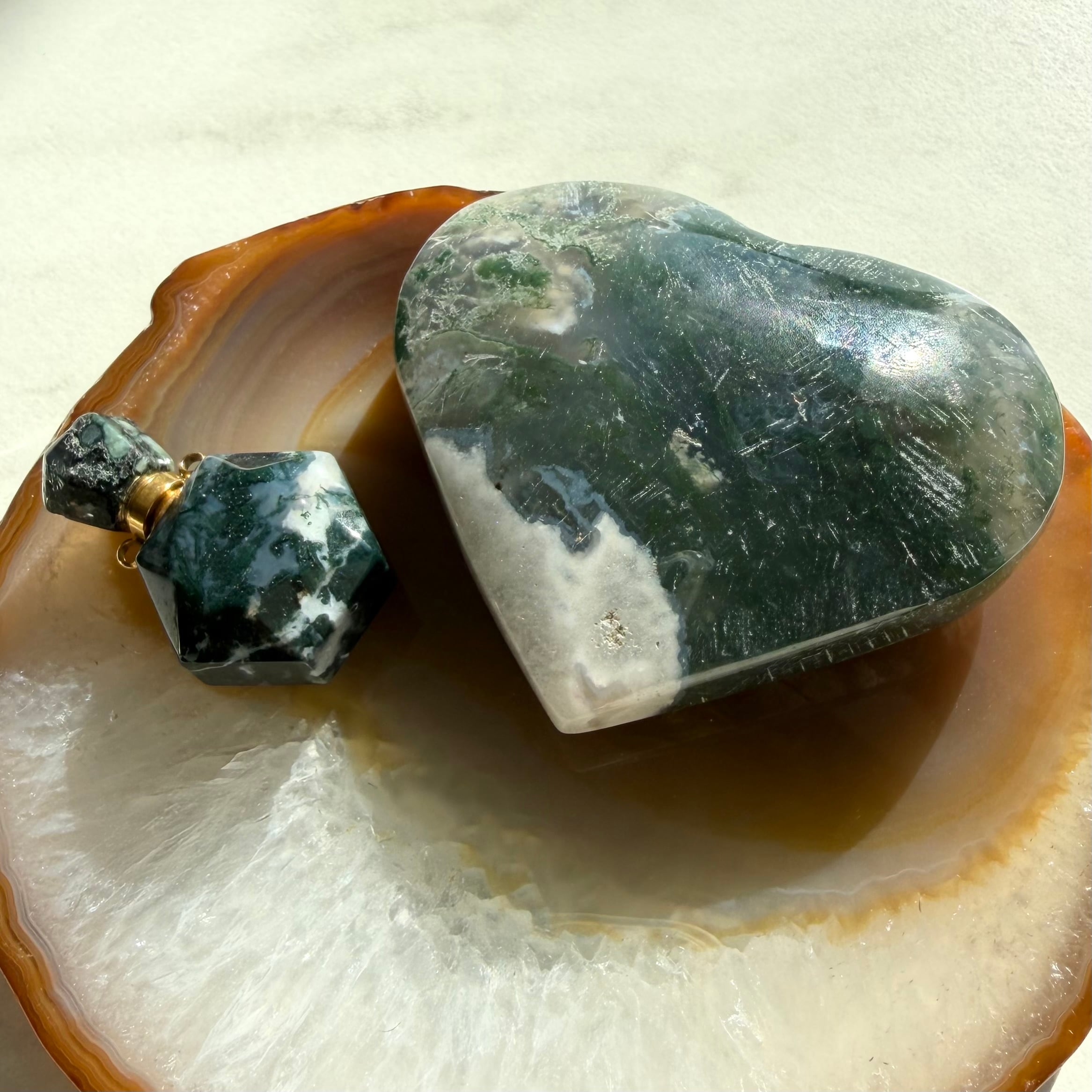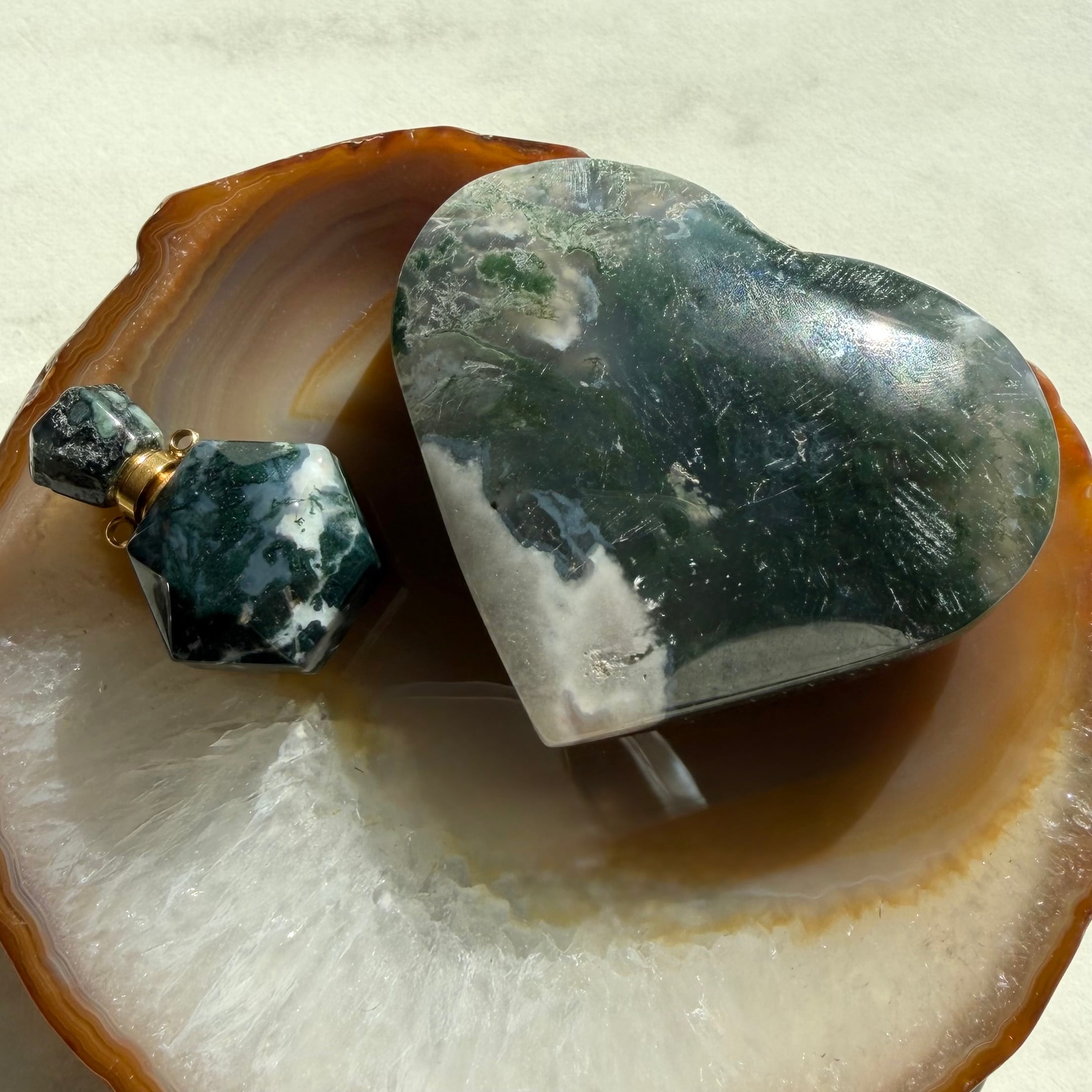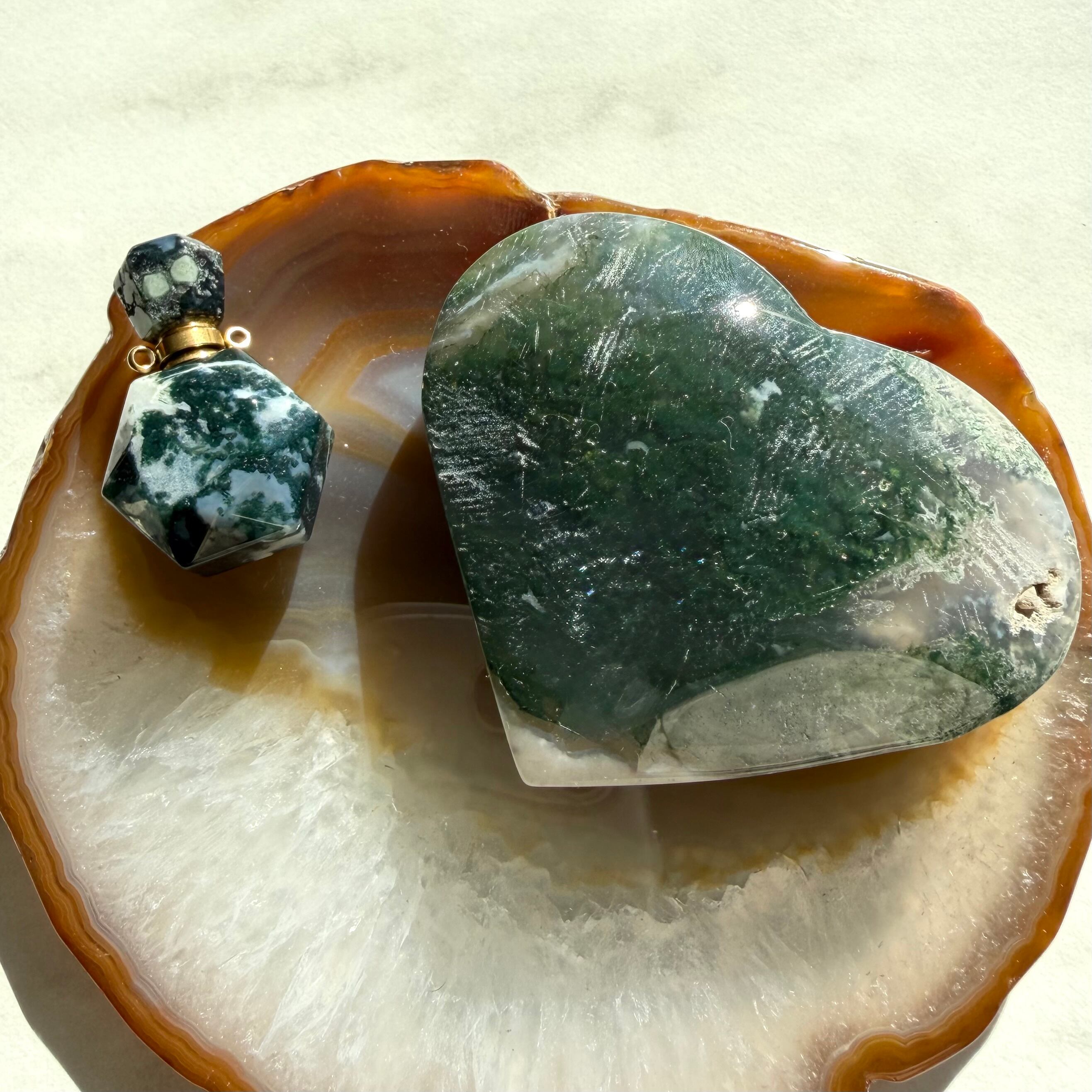 モスアゲート ハートパーム & 香水瓶 セット【D】
