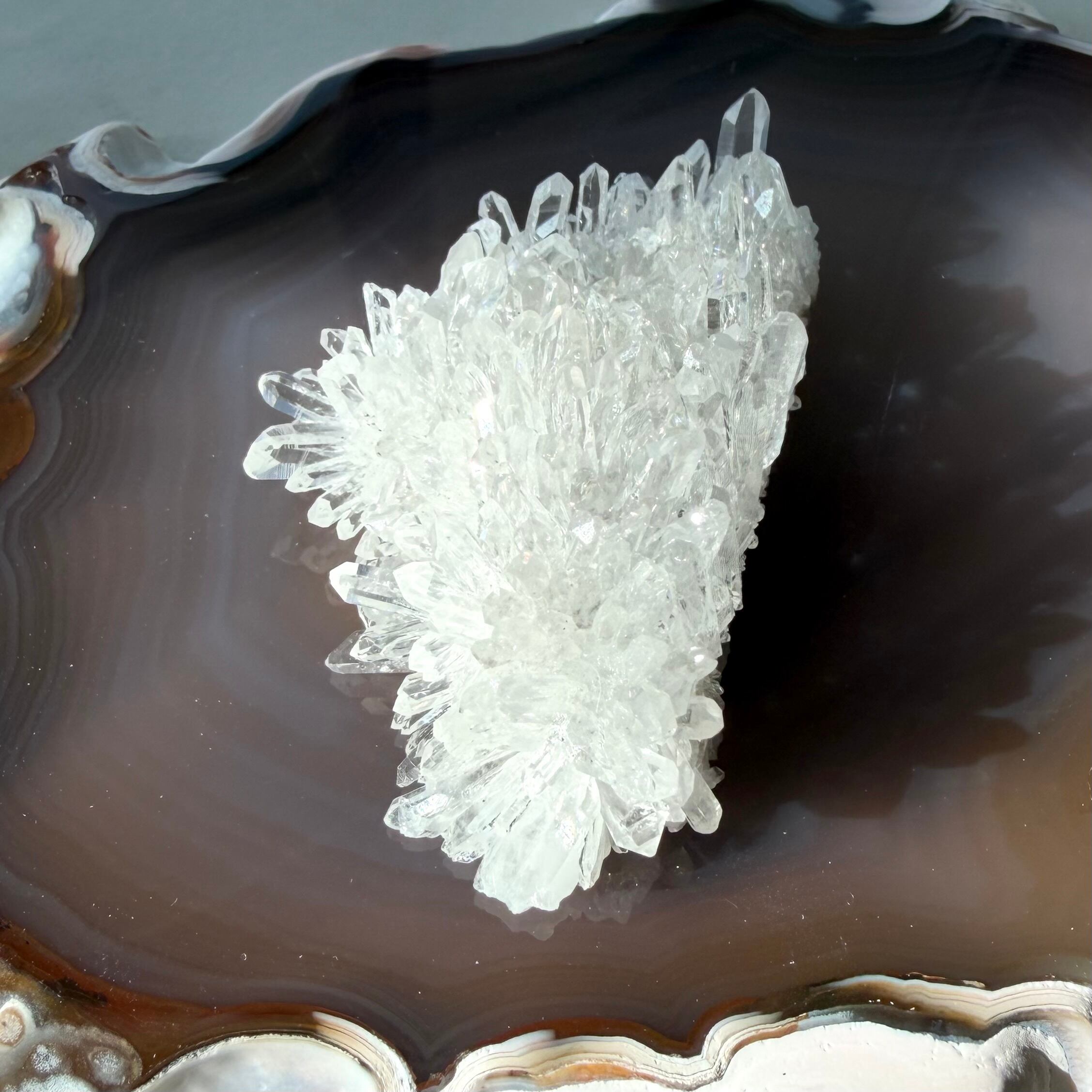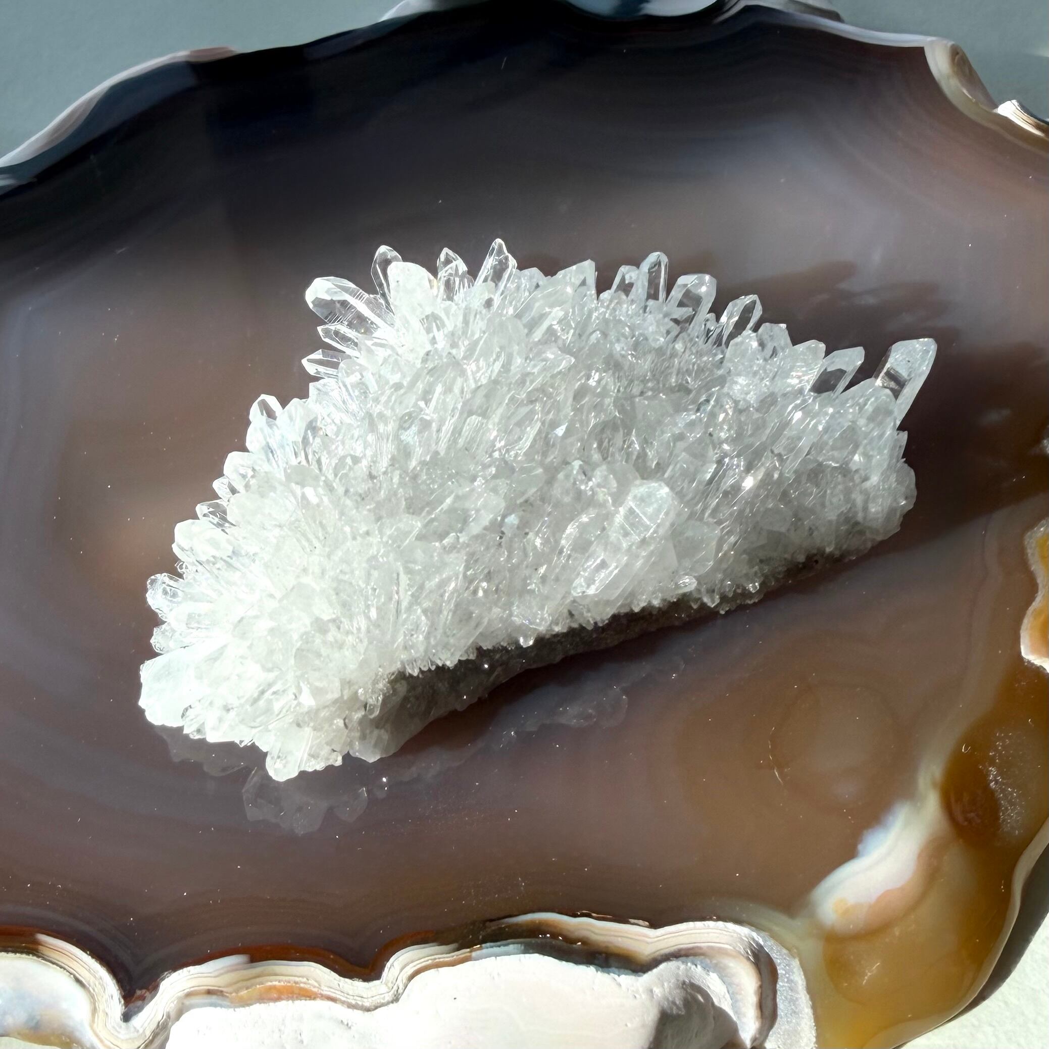 透明度の高い水晶が密に重なり合い、