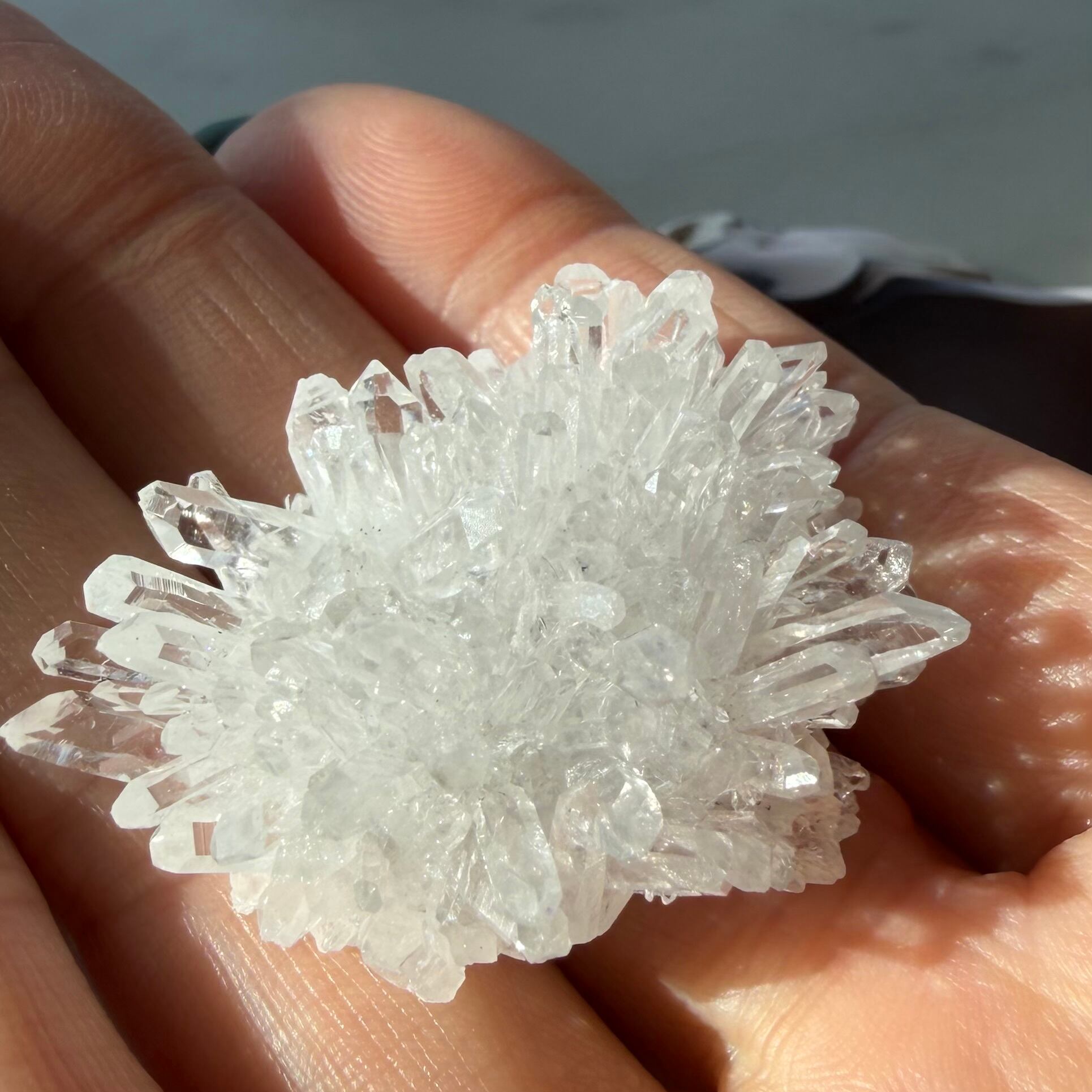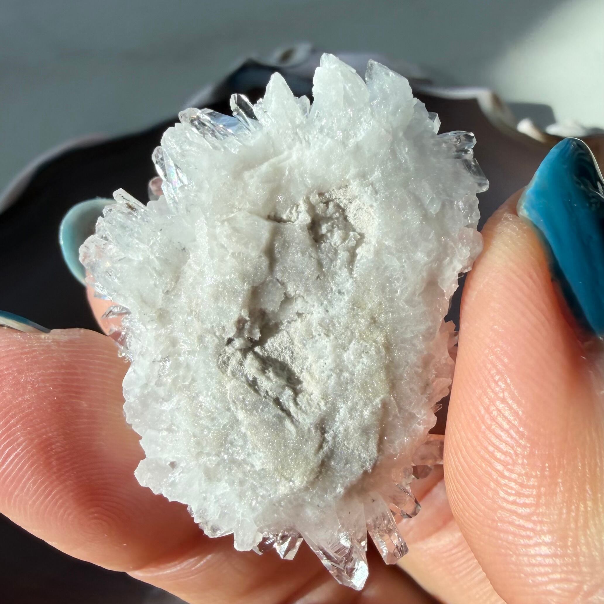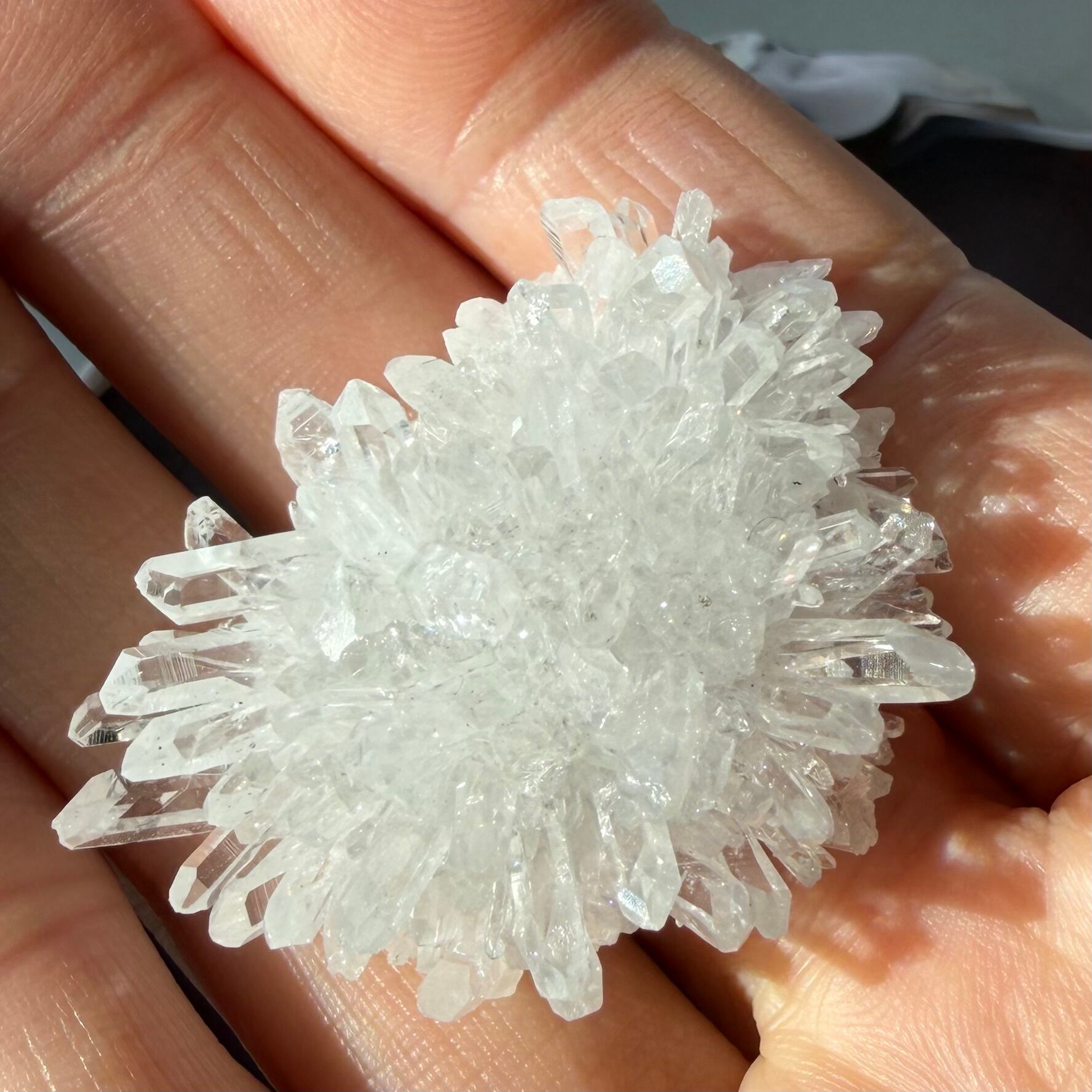 まるで一輪の白い花のように咲いた菊花水晶。